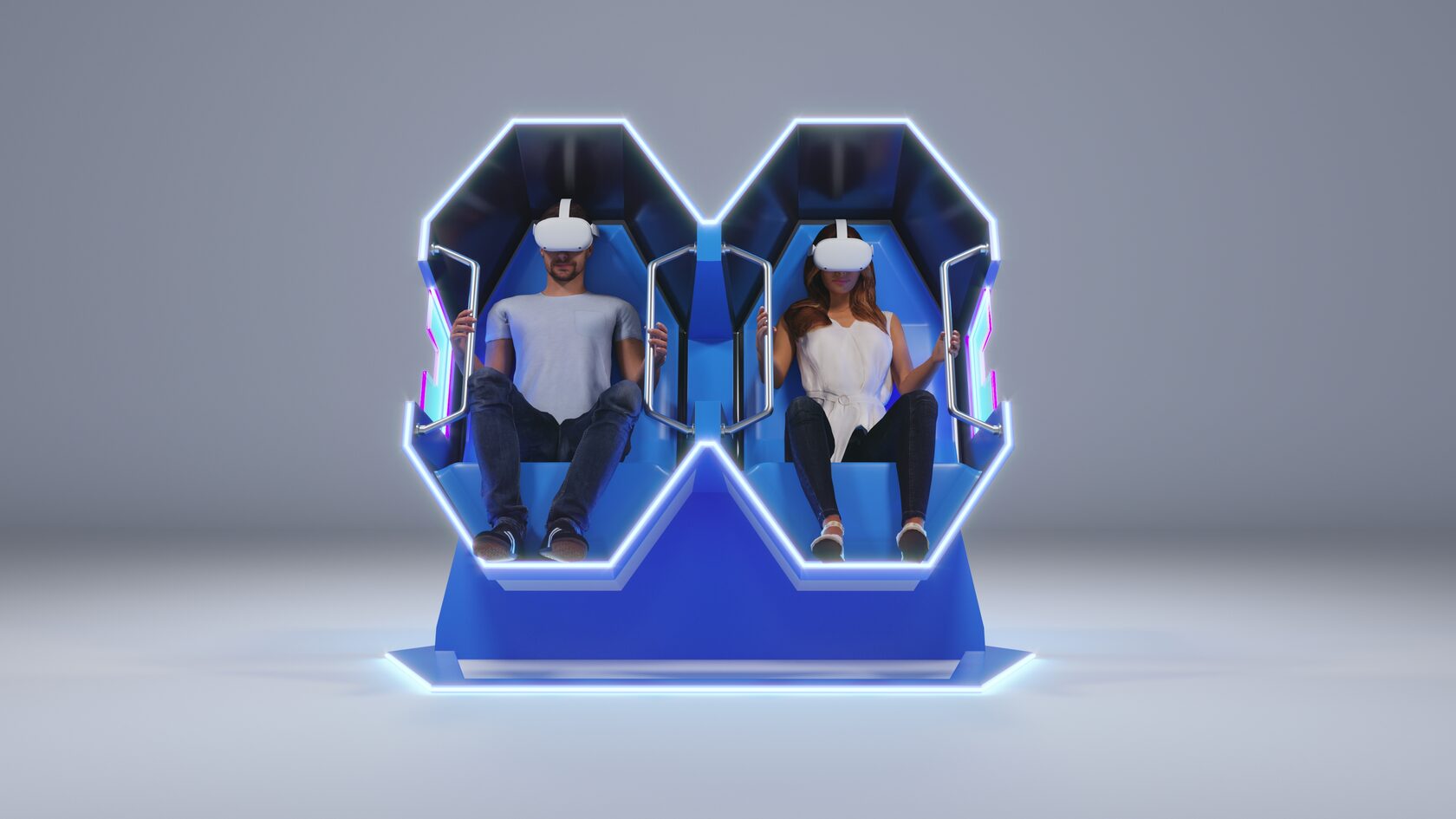 Для погружения в виртуальный мир, используется новейшее оборудование беспроводной шлем виртуальной реальности с разрешением 4к.